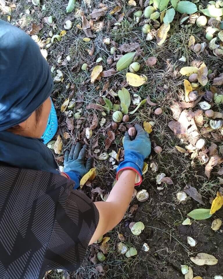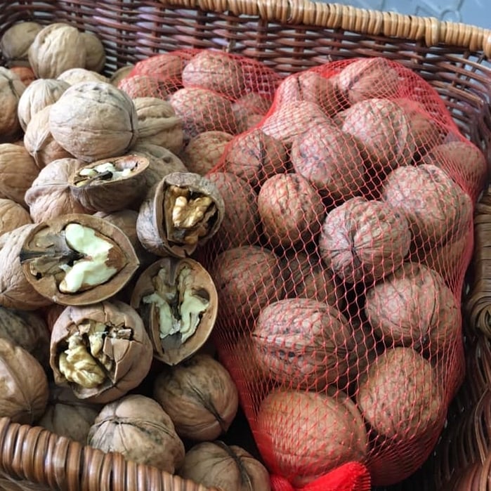皮をむき、天日干しによって乾燥させた殻付きくるみです。